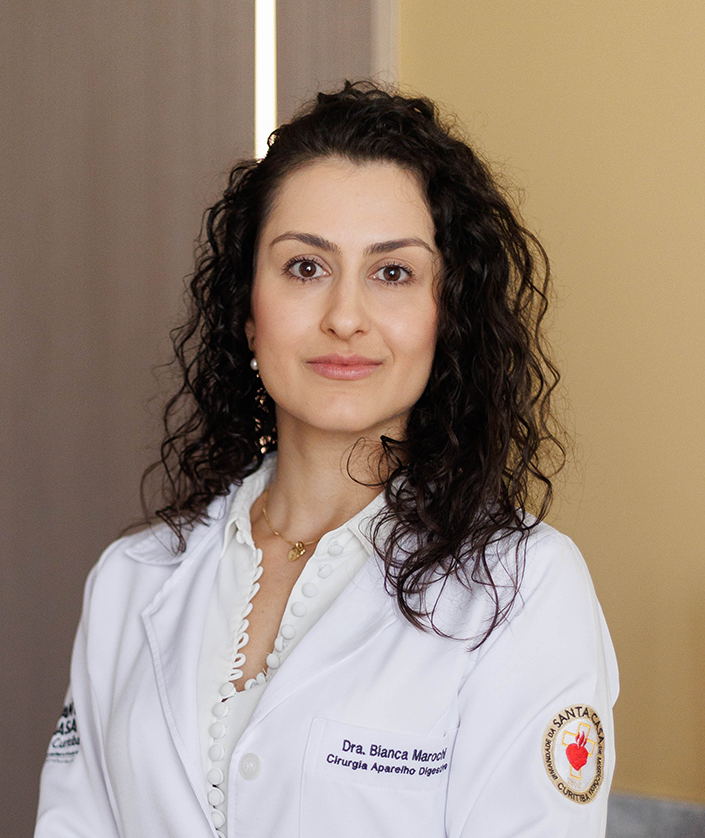 Sou a Dra. Bianca Marochi, médica cirurgiã do aparelho digestivo, com formação em cirurgia geral e especialização em doenças do sistema digestivo.